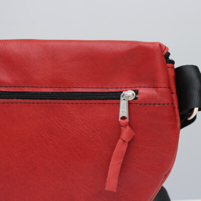 Unser/e Leo ist eine durch ihre Form anschmiegsame Umhängetasche. Durch den diagonalen Gurt lässt sie sich diagonal oder rund um die Taille bequem tragen. Dieses Modell ist unisex und verfügt über drei Reißverschluss-Fächer. Das Hauptfach lässt sich weit öffnen. Dadurch ist es von oben gut zu erreichen. Außerdem versteckt sich unter dem Autogurt ein Vorfach. Zusätzlich befindet sich auf der Rückseite, dem Körper zugewandt ein drittes Fach, welches sich gut für die Schlüssel oder das Handy eignet. Leo ist komplett auswaschbar gefüttert und lässt sich dadurch einfach reinigen.