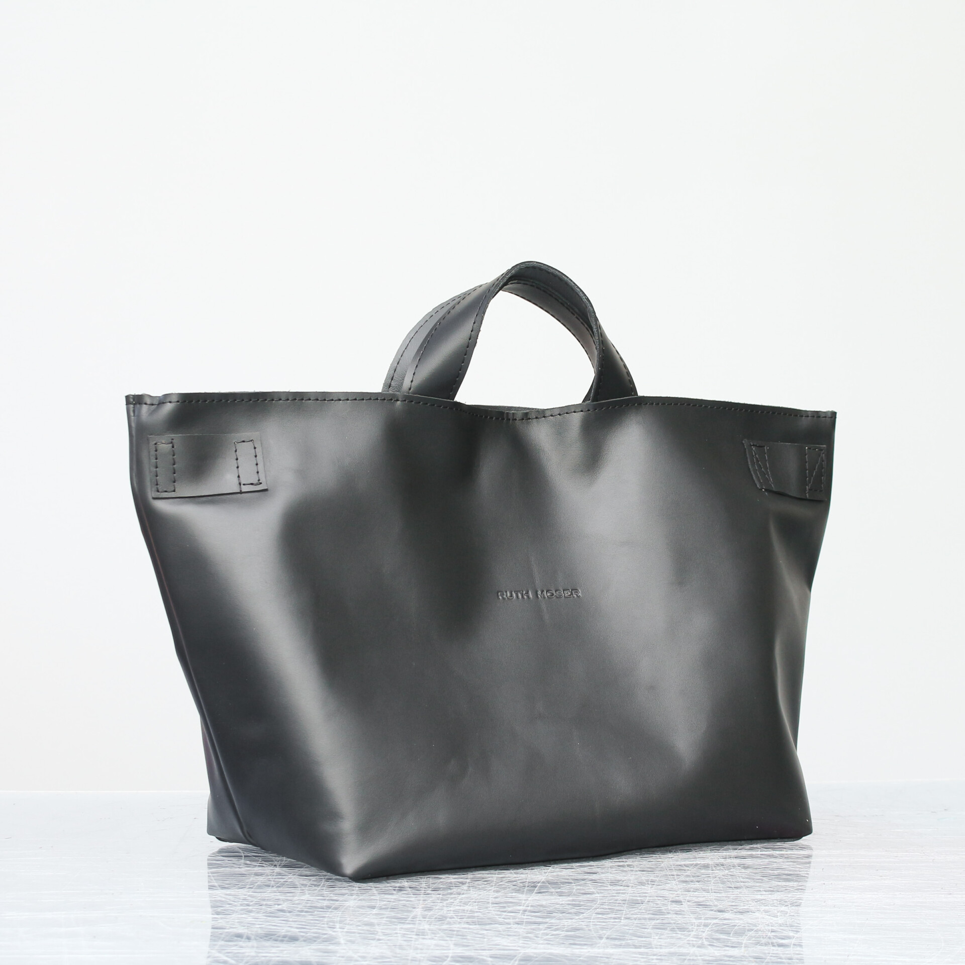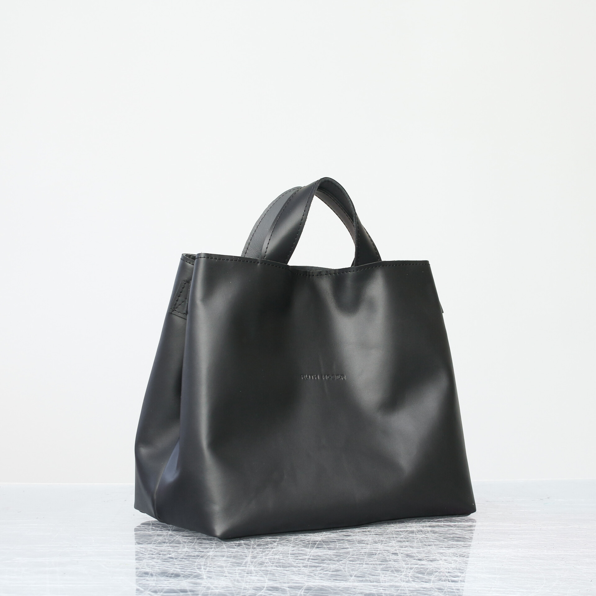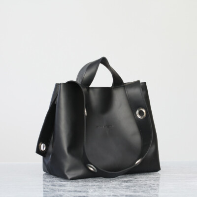Unsere nachhaltige Handtasche Berta aus Leder. Sie ist auch als Umhängetasche tragbar. Nachhaltig und fair produziert in Deutschland. Sie hat einen verstärkten Boden. Das Design erinnert an eine Sporttasche. Die Form lässt sich durch versteckte Magnete schnell verändern. Durch ihren Magnetverschluss lässt sie sich weit öffnen. Innen hell gefüttert mit einem Reißverschlussfach für deine Wertsachen und zwei offenen Fächern, ist sie gut organisiert. Außerdem ist das Innenmaterial reiß- und wasserfest. So kannst du sie einfach auswischen. Mit zwei kurzen Griffen lässt sie sich in der Hand tragen. Der extra abnehmbare Gurt macht sie zur Umhängetasche.